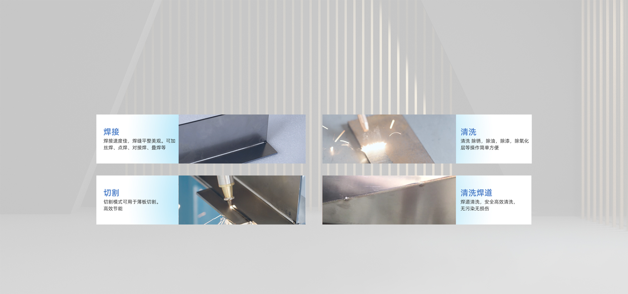 集焊接、清洗、切割和清洗焊道功能于一體,功能強(qiáng)大、一機(jī)四用。