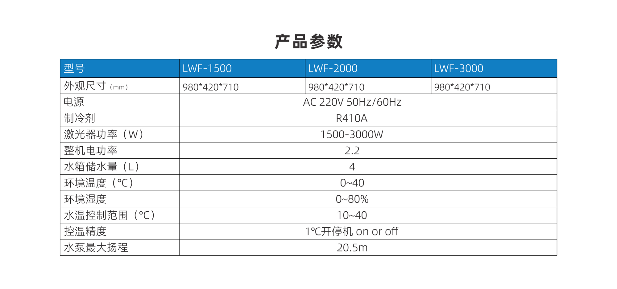 型號(hào) LWF-1500 LWF-2000 LWF-3000